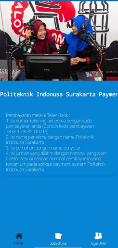 Polinus Mobile Payment เป็นหนึ่งในแอปพลิเคชั่นมือถือที่เป็นของ Polytechnic Indonusa Surakarta ซึ่งเป็นประโยชน์ในการช่วยให้นักเรียนจ่ายเงินสำหรับการชำระเงินทางการเงินผ่านทางอิเล็กทรอนิกส์ (ออนไลน์)นอกเหนือจากการทำให้ง่ายขึ้นเพราะนักเรียนไม่จำเป็นต้องมารวมตัวกันเพื่อจ่ายเงินสำหรับการบริหารการเงินโดยตรงแอปพลิเคชันนี้ยังให้ข้อมูลเช่นกำหนดการสอบสุดท้ายและการมอบหมาย