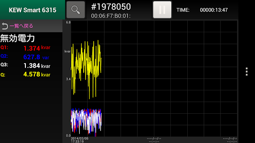 Measurements can be displayed in graphic form in real-time. Remote checking of measurements is possible without accessing KEW6315. ※ The screen size must be greater than or equal WVGA.