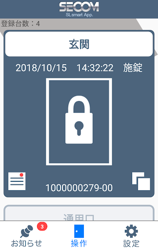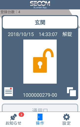 SECURILOCK SMARTは、セコム株式会社が提供するセキュリロック・スマートの操作アプリです。 本アプリを利用して次のサービスをご利用いただけます。 ■セキュリティ操作 セキュリロック・スマートの以下操作が可能です。 ・電気錠の施解錠制御 ・現状態の確認 ・操作履歴の確認 ■セキュリティ以外の機能 ・セコムからのお知らせの確認 ■本アプリに対応しているシステム ・セキュリロック・スマート ※上記以外のシステムではご利用いただけません。
