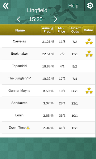 The service keeps users updated with the five best value bets continuously so the list is not fixed - horses may get added or removed from the hot list minute by minute as the bookie odds shorten or drift.