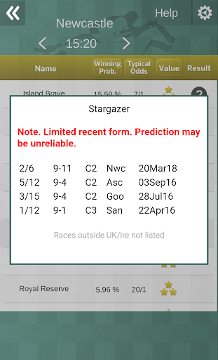 AI Race Predictor was developed by a small team of racing experts including a computer programmer with a PhD in Artificial Intelligence. It uses an extensive database covering all races in the UK and Ireland going back seventeen years. All the standard race data has been considered, including surface type, going, distance, jockey, weight carried etc.