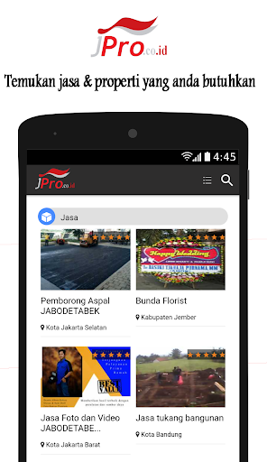 JPro.co.id layanan iklan inovatif yang melayani berbagai jenis jasa iklan usaha dan profesi dengan kategori sebagai berikut: iklan Properti (jual beli rumah), Konsultan (Pengacara, Akuntan, Arsitek dll), Renovasi dan Bangun Rumah, Mekanik Mobil,
