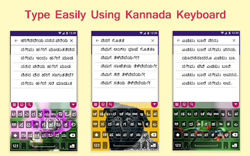 helps you to type in Kannada language smoothly with eye catching themes. Select amazing themes to set your Kannada keypad background or you can select your own photo from gallery or camera to make your beautiful keyboard background.