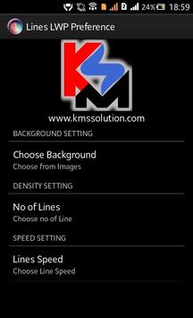 Lines are moving in screen and respond to touch. -Beautiful backgrounds. -Multicolour lines. -Set number of Lines. -Change Speed of Lines. Set Line Live Wallpaper from Wallpaper-> Live Wallpaper -> Line Live Wallpaper.
