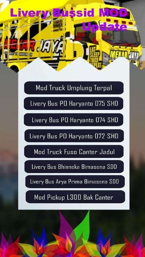 Sudah banyak MOD Bussid yang ada tapi dengan pembaruan game BUSSID V3.0 juga ada MOD baru, aplikasi ini berisi kumpulan MOD kendaraan BUSSID atau bus simualtor indonesia, MOD kendarran bussid yang ada dalam aplikasi ini adalah :