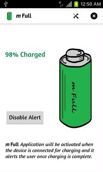 m Full is a battery full notification application which helps in avoiding over charging of the battery which intern enhances the battery life!!. This application is automatically activated once the user connects the device for charging. On completion of the charging this application alerts the user by playing alarm or ringtone to disconnect the charger. User can configure the alert notification settings.
