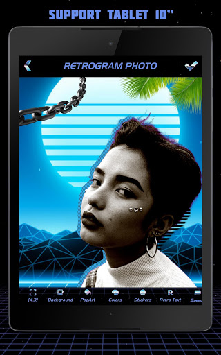 Retrowave Photo Maker: เปลี่ยนรูปถ่ายของคุณเป็น 80 ของ Retrowave Photo Maker ให้เครื่องมือมากมายในการทำให้ภาพถ่ายของคุณดูเหมือนโปสเตอร์ Retrowave 80 ของคุณสามารถเลือกพื้นหลัง Retrowave ที่คุณต้องการและตั้งค่าใช้งานได้ใช้ฟิลเตอร์บางตัว เช่นเดียวกับ Popart หรือ Duo ฟิลเตอร์สีโทนเพิ่มสติ๊กเกอร์ย้อนยุค Synthwave บางตัวเขียนและเพิ่มรูปแบบข้อความ Retrowave และนี่คือภาพถ่าย Retrowave ของคุณพร้อมที่จะแบ่งปันกับเพื่อนของคุณในแอปโซเชียลเน็ตเวิร์กทั้งหมด