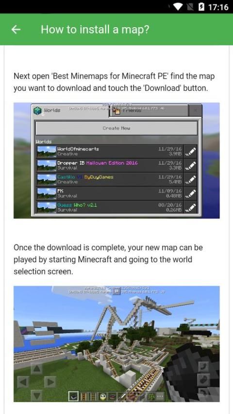 Look at our new mcpe maps collection. You will find a lot of amazing minecraft mini games in one place. You should download this app right now! You will treat yourself with easy.