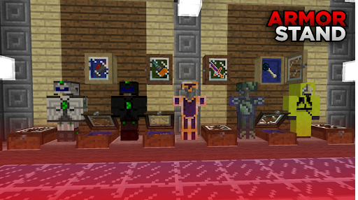 แอปพลิเคชันเกราะของเราสำหรับ Minecraft จะเพิ่ม Mods ใหม่สำหรับ Minecraft Pocket Edition ไปยังเกม คุณสามารถรับปืนใหม่ดาบสำหรับ Minecraft, Armor และแผนที่ที่น่าสนใจสำหรับการผ่าน แร็คเกราะจะปรากฏในเกมด้วย ขาตั้งสำหรับ Minecraft จะช่วยให้คุณวางเกราะในที่ที่เห็นได้ชัดเจน ใช้ขาตั้งเพื่อวางอาวุธสำหรับ Minecraft เมื่อต้องการทำเช่นนี้คุณจะต้องใช้ปืน MOD