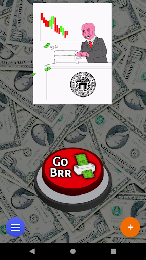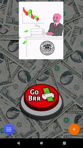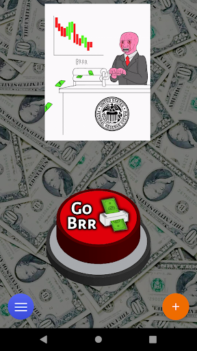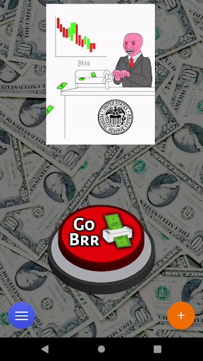 The new 2020 Money Printer Printer Go Brrr meme button to print cash and money to the bankruptcy!