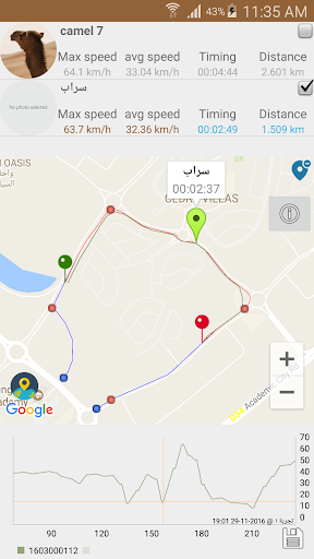 •การติดตามเรียลไทม์ของการแข่งขันของอูฐของคุณที่วัดและแสดงระยะทางความเร็วเวลาและค่าเฉลี่ย