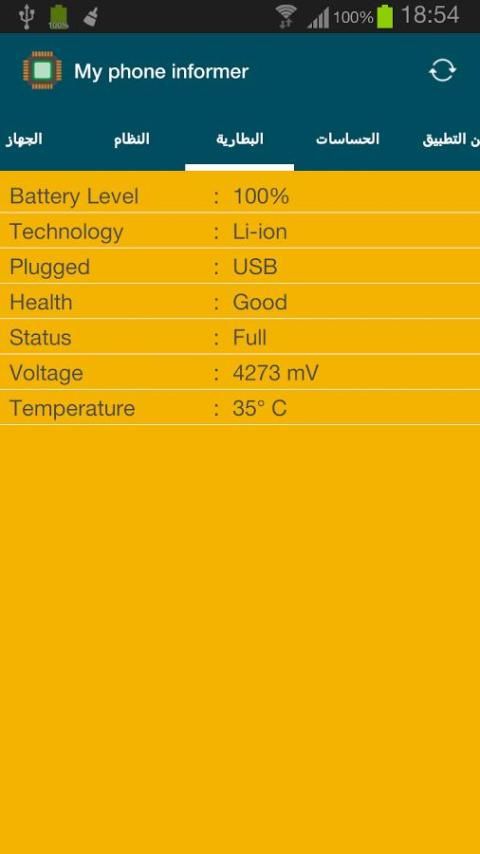 »-- معلومات مهمة حول البطاريه كانسبة الشحن ودرجه حراره البطاريه وحالتها...