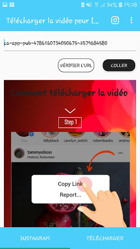 2 เปิดแอป Downloader และป้อนลิงค์ที่คัดลอกภายในส่วนที่ต้องการและกดปุ่มตรวจสอบ