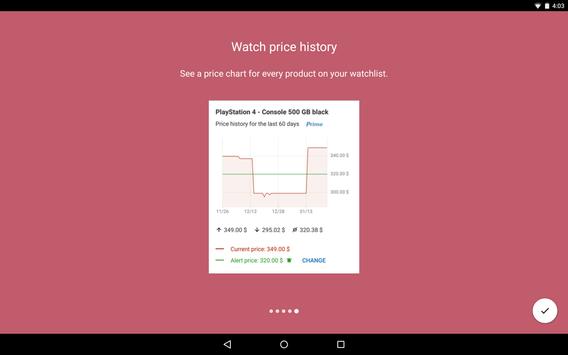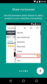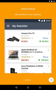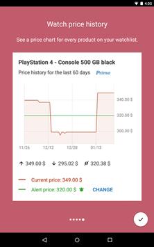 With our Price Alert you'll be notified as soon as the price of your watched products of the Amazon Store drops. Just add them to your watchlist in this app and optionally set a threshold. Receive an alert via push notification directly on your smartphone or tablet as soon as the your threshold is reached.