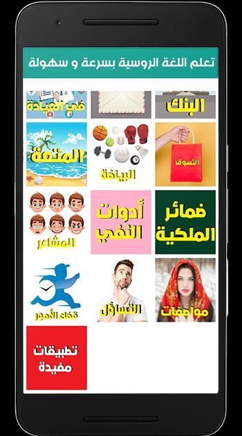 Using this application will be able to learn the Russian language rules easily, and all without the need for a teacher as it is easy and simple and also has a very large number of sentences and phrases that will need to be used in communication with any Russian person, as you can with this application Learn how to talk with Russian girls because it has a special section Baltaref and how to speak Russian fluently, and to indicate the application contains an explanation of the words and Russian sentences in Arabic and Russian language also allows you to listen to it in my voice, and that voice is clear and very high quality .