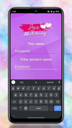 The love test application will show how well your names fit together.
