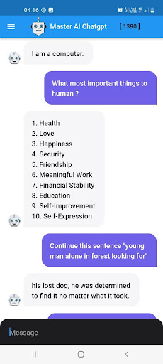 AI chatbot ของเราเป็นเหมือนการมีผู้ช่วยส่วนตัวในกระเป๋าของคุณ!ด้วยแอพของเราคุณสามารถถามคำถามรับคำตอบและแม้กระทั่งมีการสนทนากับผู้ช่วยเสมือนลองเลยและดูว่ามันจะทำให้ชีวิตของคุณง่ายขึ้นได้อย่างไร!