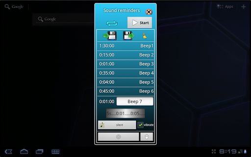 The program allows you to create a schedule of melodies. Selected melodies will sound at specified intervals. You can set up to 10 time points for each choose their tune, name, mode of vibration.
