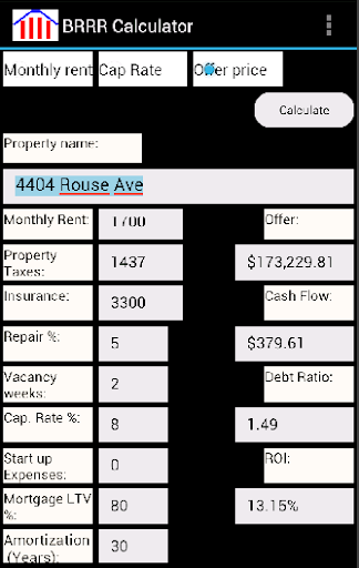BRRR Calculator application  is used when deciding to invest in rental real estate. The main distinction of the application from other similar is that the investment decision is taken on the basis of income, the investment will bring, not the price demanded by the seller.