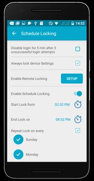 - Repeat locking based on week days (Lock on Sundays, Mondays, Wednesday etc)