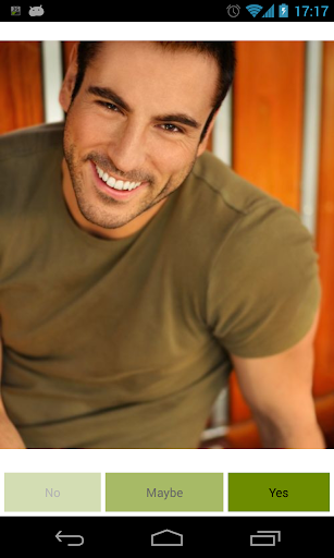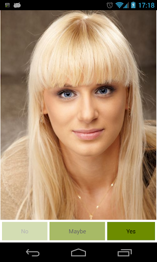 Site members authorize in the application and are able to view and rate all other members' photos anonymously. Three buttons are used for rating: Yes, No, Maybe.