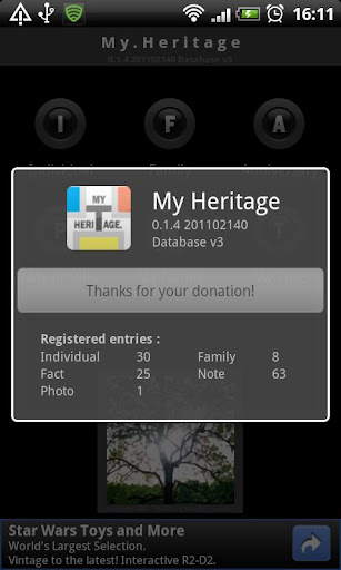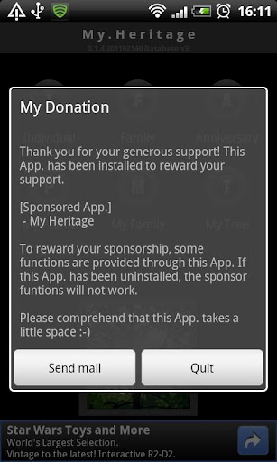 หากคุณชอบแอปพลิเคชั่น "มรดกของฉัน" มันจะดีถ้าคุณสนับสนุนฉันด้วยการบริจาค ซื้อแอปพลิเคชันนี้เพื่อสนับสนุนการพัฒนา [แอปพลิเคชันที่ได้รับการสนับสนุน: มรดกของฉัน] สามารถลบโฆษณาได้ฟรี * แอปพลิเคชันนี้เป็นเพียง Add-on * คุณต้องติดตั้ง "Heritage" ฟรี!