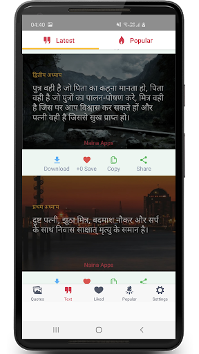 คอลเลกชันที่ใหญ่ที่สุดของคำพูดภาษาฮินดี Chanakya Neeti แอป Chanakya Niti จะให้ความกระจ่างแก่คุณเกี่ยวกับคำพูดของชีวิตของครูนักปรัชญานักเศรษฐศาสตร์นักเศรษฐศาสตร์นักเศรษฐศาสตร์และที่ปรึกษาของอินเดีย