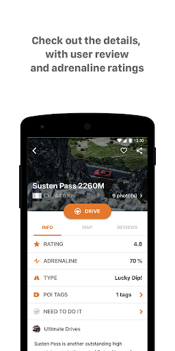 The app features the greatest driving roads across Europe with the latest release now including other interesting places to visit and experiences en route. Search for the top automotive museums, track days and performance car hire companies. Explore, enjoy and then share with others in the community. We hope you come on-board and find inspiration for your next ultimate drive!