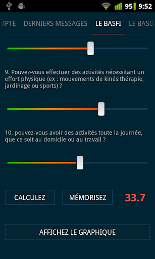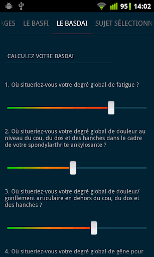 Cette application met à votre disposition deux outils qui vous permettront de calculer votre BASFI et votre BASDAI.