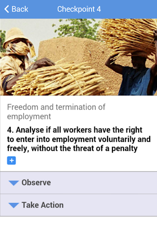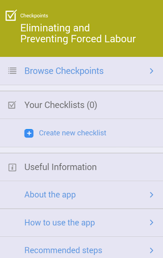 Eliminating and Preventing Forced Labour - Checkpoints allows business managers and auditors to create interactive checklists that will help them ensure a forced labour-free operation. There are 38 checkpoints in total. Each checkpoint provides best-practice recommendations for taking action.