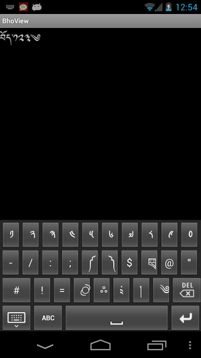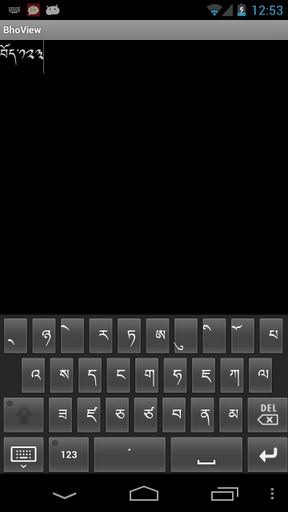 This is a basic Tibetan keyboard from the Bho for Android opensource project: http:code.google compbhoIT DOES NOT REQUIRE ROOT OR SPECIAL FONTS :Please use with other quot;iron Rabbitquot; apps like BhoView, Monlam dictionary and TbTxt.The new layout uses the same QWERTY style as the iOS devices, as documented here:http:digitaltibetan.orgindex.phpTibetanInputMethodforAppleiOS4.2devicesiPhone,iPad,iPodtouchtags Zngq