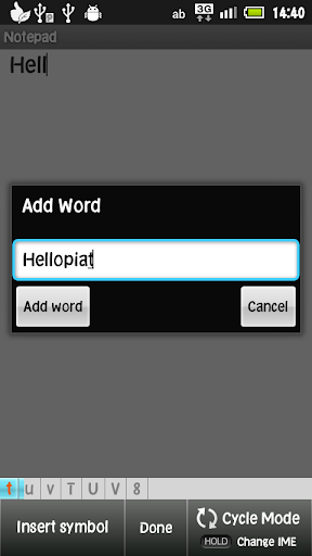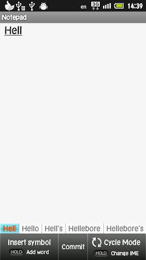 T9 predictive text input method using your hardware keypad. This is not a software/on screen keyboard.