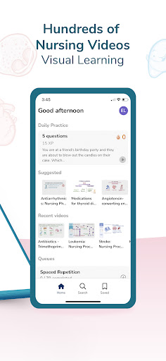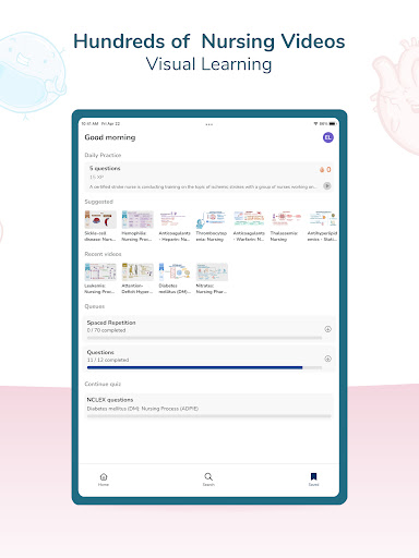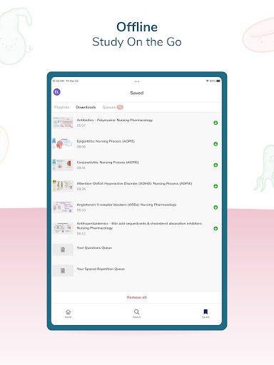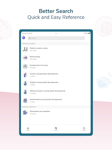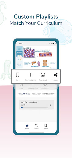 - ผ่านวัสดุได้เร็วขึ้นห้องสมุดที่กำลังเติบโตของวิดีโอการพยาบาล 475 รายการที่พัฒนาโดยนักการศึกษาด้านการพยาบาลสำหรับพยาบาลในปัจจุบันรวมถึงวิดีโอวิทยาศาสตร์หลายร้อยรายการซึ่งรวมการบรรยาย 1 ชั่วโมงในเวลาเพียง 10 นาทีพร้อมให้ดาวน์โหลดสำหรับการใช้งานแบบออฟไลน์!