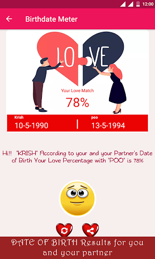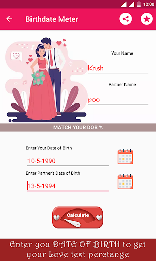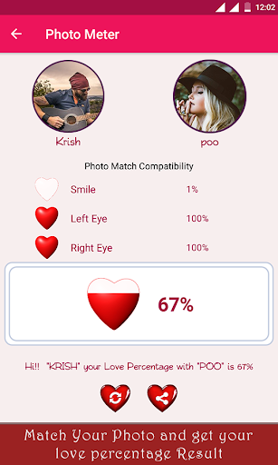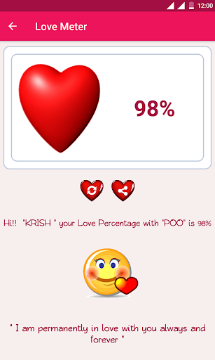 Play this free love test meter calculator app on your friends, your beloved partner, or share your love match result with them by sharing it.