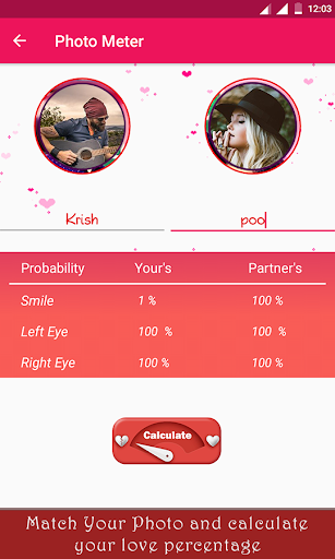 Using Real Love Meter Calculator application to know loving affinity with your partner, you see the result between you and your partner Love.