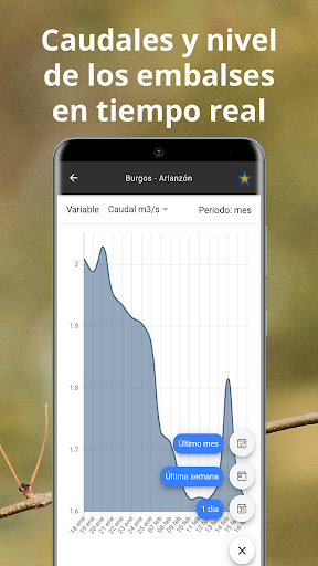 รวมข้อมูลการพลิก (Ameros) และระดับของอ่างเก็บน้ำและหนองน้ำในเวลาจริง ข้อมูลจะได้รับจากสหพันธ์อุทกศาสตร์จากเครือข่าย SAIH (ระบบข้อมูลอุทกวิทยาอัตโนมัติ) ข้อมูลการไหลและระดับของสถานีรีสอร์ทของสหพันธ์Miño-Sil, Cantabrian, Duero, Ebro, Tajo, Júcarและ Waters ในร่มของ Galicia