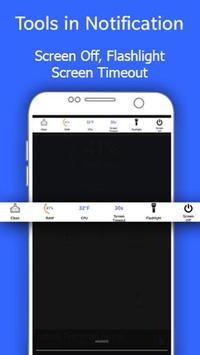 The notification bar informs you if you need to boost your mobile phone by indicating the state of the ram and the CPU temperature.
