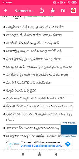 แอปอ่านข่าว Telugu เพื่อรับข่าวสารล่าสุดของ Telugu News จากเอกสารข่าว Telugu ทั้งหมดใน AP และ Telanganaอ่านหนังสือพิมพ์เตลูกูและพอร์ทัลข่าวที่คุณชื่นชอบในแอปข่าวเตลูกูที่ดีที่สุดแอปพลิเคชั่นนี้ครอบคลุมหัวข้อข่าวทุกประเภทเช่นงานปัจจุบันข่าวในวันนี้ใน Telugu, การเมือง, Tollywood, การเลือกตั้ง, กีฬา, เทคโนโลยี, สุขภาพ, ธุรกิจ, ธุรกิจชั้นนำและอื่น ๆ จากกว่า 70 แหล่งที่เชื่อถือได้