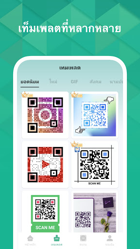 ในแอปมีแม่แบบในการสร้างรหัส QR ที่หลากหลายและด้วยการออกแบบที่งดงามของแม่แบบสำหรับสร้างรหัส QR จะช่วยให้คุณสร้างรหัส QR ที่โดดเด่นและสวยงามได้ง่ายๆ เพียงไม่กี่ขั้นตอน