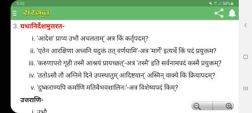 นี่เป็นหนึ่งในแอพการเรียนรู้ที่ได้รับความนิยมมากที่สุดของอินเดียที่มีการแนะนำสิ่งที่เป็นประโยชน์ในสามสิ่งที่จะทำให้เป็นห้องผลลัพธ์ที่ใช้ประโยชน์ได้ตลอดเวลาลักษณะที่ง่ายต่อการย่อยและพัฒนาทักษะทางทฤษฎีและการวิเคราะห์ที่ดีกว่าซึ่งจำเป็นในการสอบต่างๆคำตอบมีให้ในลักษณะทีละขั้นตอนที่เกี่ยวข้องกับบทต่าง ๆ ของภาษาสันสกฤตชั้น 10