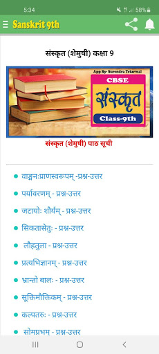 This app contains notes and Q & A of all the chapters included in the CBSE Class 9 NCERT Sanskrit Book :