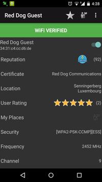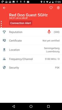 * All fingerprint check results are tracked to calculate the overall reputation for each corresponding access point. The reputation is displayed in the app a green, yellow or red icon (looks like a WiFi person) in the right margin by the access point name. The number of fingerprints on which the reputation is based is displayed in brackets next to the reputation icon.
