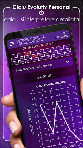 ตั้งแต่ช่วงเวลาที่เกิดแต่ละคนจะอยู่ภายใต้วิวัฒนาการที่ขึ้นอยู่กับรหัสส่วนบุคคลที่เกิดขึ้นจากการคำนวณพิเศษของวันเกิดแอปพลิเคชันช่วยให้การคำนวณที่แน่นอนของวัฏจักรวิวัฒนาการส่วนบุคคลและเสนอการตีความที่แน่นอนในขั้นตอนปัจจุบันในชีวิตของมนุษย์และวิวัฒนาการที่ตามมานอกจากนี้ยังช่วยให้การคำนวณการคาดการณ์เป็นระยะเวลาที่ห่างไกลจากอนาคตรวมถึงการถอดรหัสเหตุการณ์ที่โดดเด่นบางอย่าง