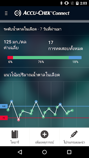 • โอนผลระดับน้ำตาลในเลือดโดยอัตโนมัติจากเครื่องตรวจไร้สาย Accu-Chek ที่สนับสนุน - ไม่ต้องมีสมุดบันทึกผลที่ต้องเขียนอีกต่อไป