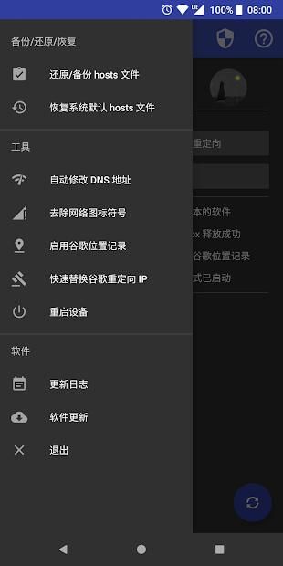 这是一款以修改 Android 手机内置 hosts 文件为主功能,集“快速替换重定向 IP”、“去除网络图标符号”、“激活谷歌位置报告”和“自动修改 DNS 服务器”等子功能于一体的应用程序。