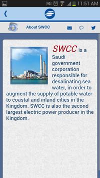 SWCC is a Saudi government corporation responsible for desalinating sea water, in order to augment the supply of potable water to coastal and inland cities in the Kingdom. SWCC is also the second largest electric power producer in the Kingdom.