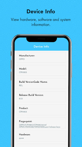 BR>- ผู้ใช้สามารถดูข้อมูลอุปกรณ์เต็มรูปแบบเกี่ยวกับซอฟต์แวร์และฮาร์ดแวร์ผู้ใช้สามารถตรวจสอบรายละเอียดโทรศัพท์ได้อย่างรวดเร็ว