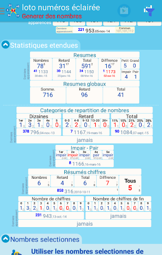 •การแจ้งเตือนการพิมพ์ใหม่ทันที•สถิติหลายประเภทง่ายและกว้างขวางเช่นครั้งสุดท้ายที่มีจำนวนปรากฏขึ้นจำนวนครั้งทั้งหมด หมายเลขปรากฏขึ้นและอื่น ๆ อีกมากมาย