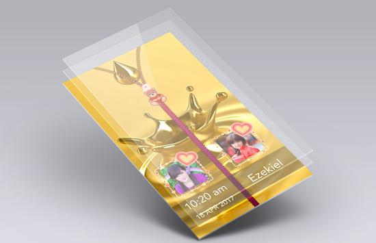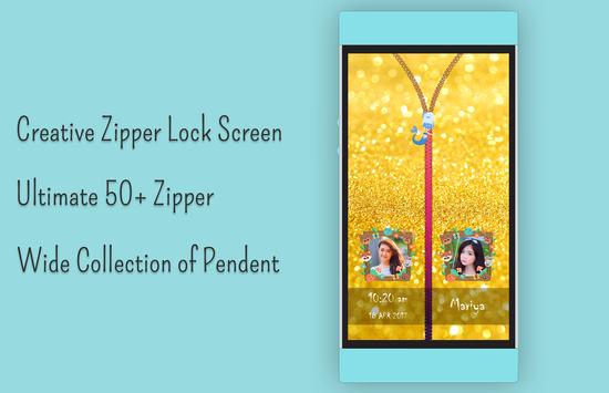 gold zip lock screen has lots of choice for zipper and pendant over zip. you can customize zip lock as per your need. You can decorate your diy lock screen by placing your photo with an amazing frames with both side of zips on lock screen.