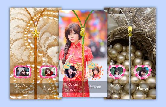 Pearls zip lock screen has lots of choice for zipper and pendant over zip. you can customize zip lock as per your need. You can decorate your diy lock screen by placing your photo with an amazing frames with both side of zips on lock screen.